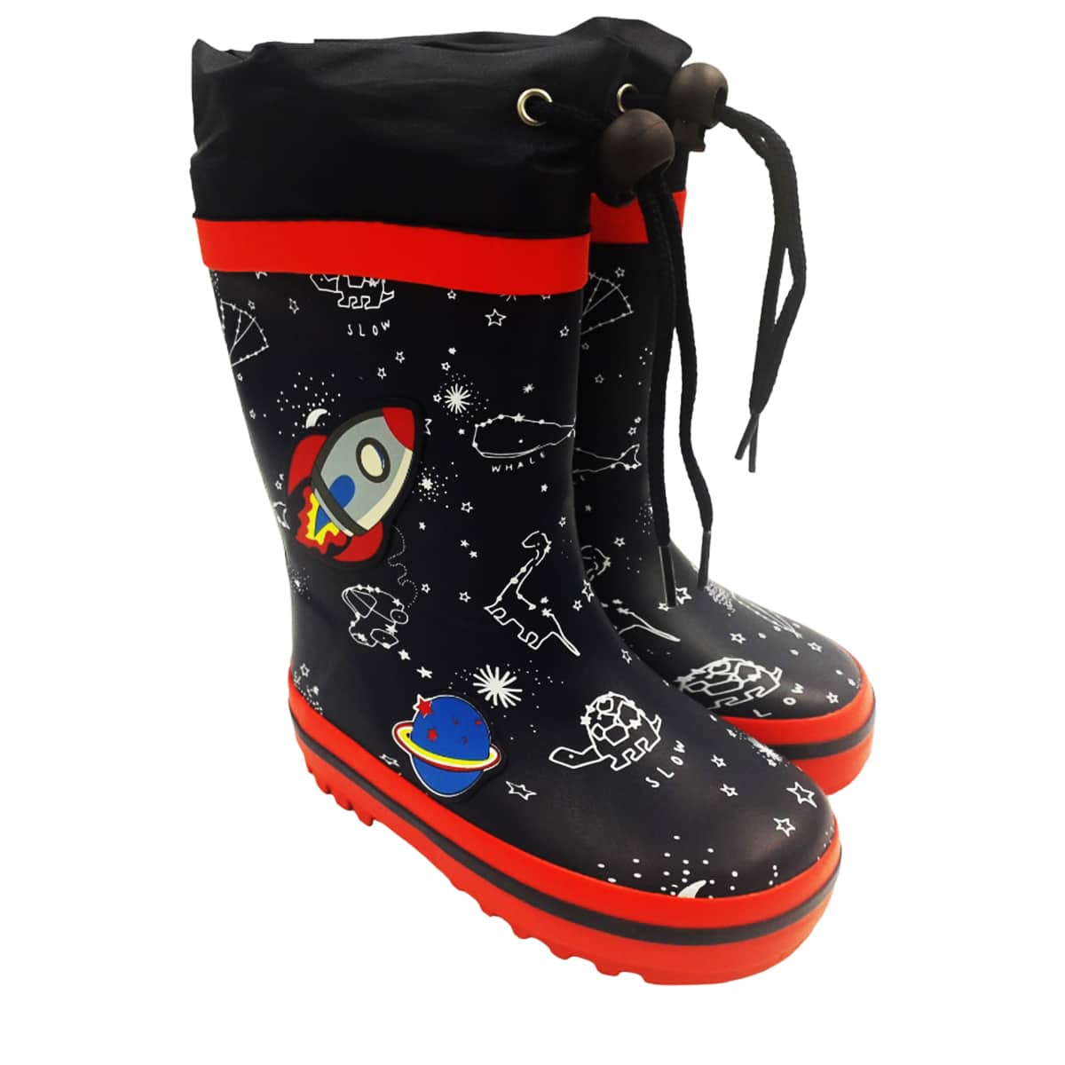 Παιδικές γαλότσες της εταιρείας Alegria από 100% λάστιχο εξαιρετικής ποιότητας, σε σχέδιo διάστημα με υπέροχα χρώματα. Με εσωτερική επένδυση από γούνα κρατώντας ζεστά τα παιδικά ποδαράκια ακόμη και τις βροχερές μέρες. Η γαλότσα έχει ρυθμιζόμενο κορδόνι, έτσι ώστε να σφίγγει στο ποδαράκι και να προστατεύει από την βροχή ή το χιόνι. Σόλα σταθερή, ευλύγιστη και αντιολισθητική για μεγαλύτερη ασφάλεια.