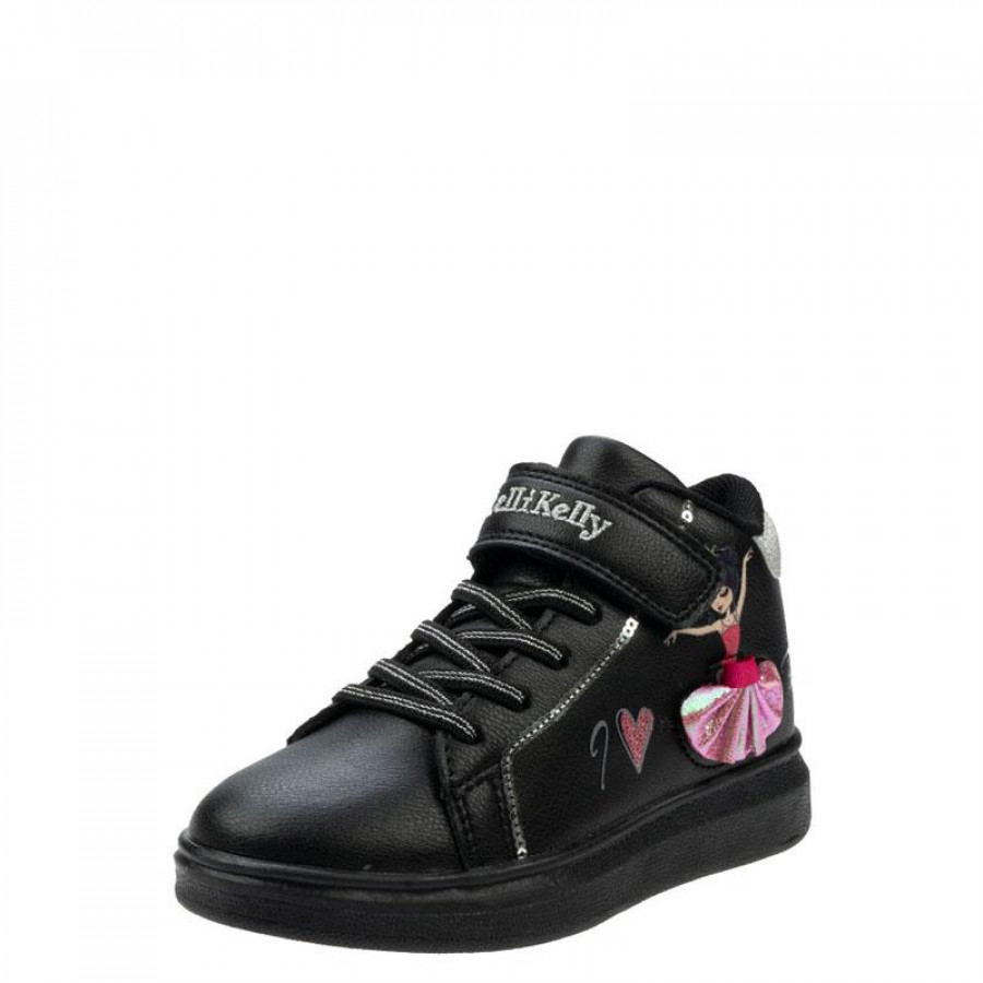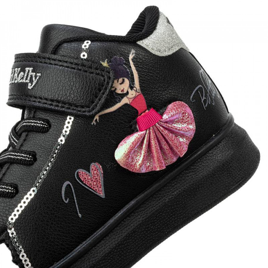 Lelli Kelly μποτάκι με αυτοκόλλητο και ελαστικά κορδόνια. Διαθέτει προσθαφαιρούμενες μπαλαρίνες στο πλάι. Το εσωτερικό αποτελείται από ύφασμα και υφασμάτινο πατάκι. Η εξωτερική σόλα αποτελείται από λάστιχο.