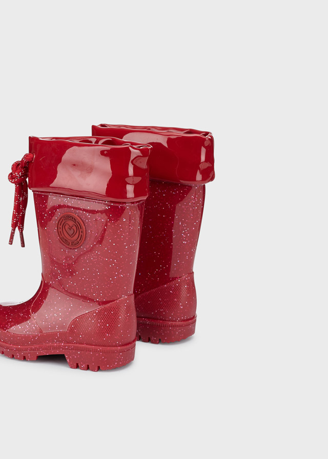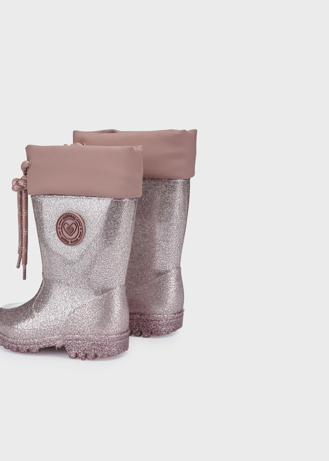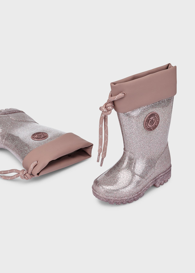 Παιδικές γαλότσες Mayoral σε ροζ χρώμα με glitter που προσφέρει υπέροχες εμφανίσεις στις βόλτες τους. Ιδανικά θα συνδυαστούν με τα jeans τους ή τα κολάν για τις βροχερές ημέρες χάρη στο αδιάβροχο υλικό τους.