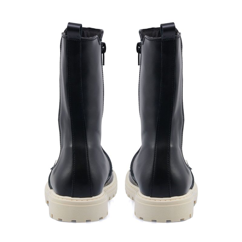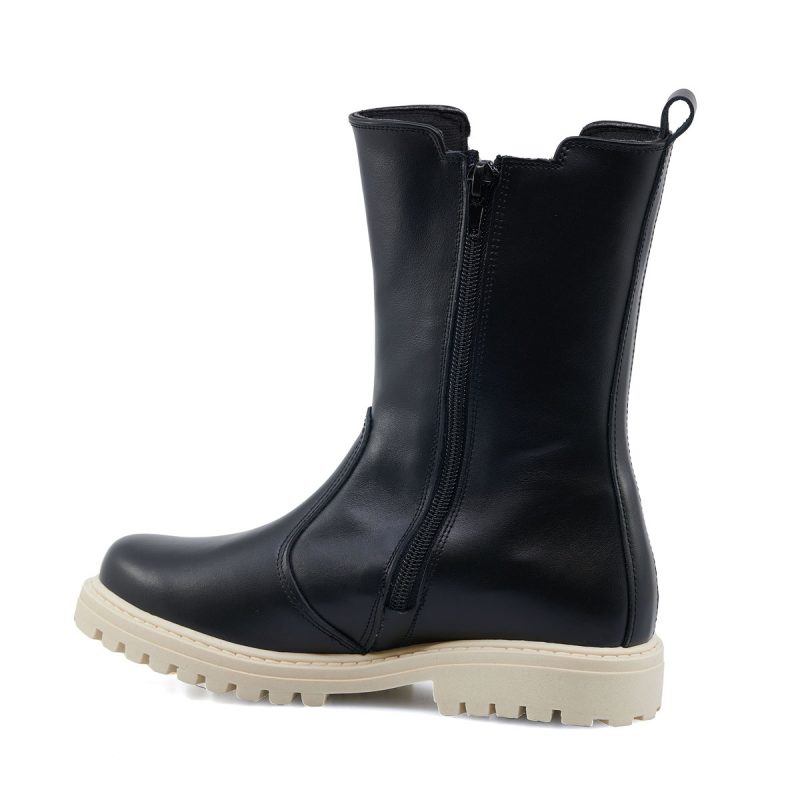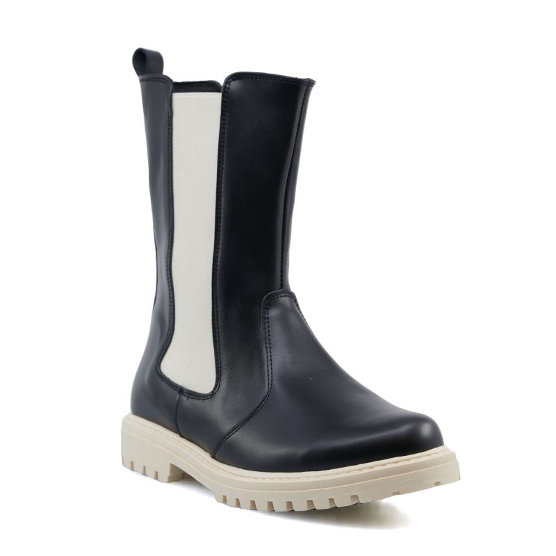 Δερμάτινο μποτάκι της εταιρείας ricco.Με δερμάτινο ανατομικό πάτο .Αντιολισθητική εύκαμπτη σόλα. Κλείσιμο με φερμουάρ στο πλάι. Υπέροχο στυλάτο μοντέρνο μποτάκι με διακοσμητικό μπεζ λάστιχο στο πλάι σε μαύρο χρώμα και μπεζ σόλα.